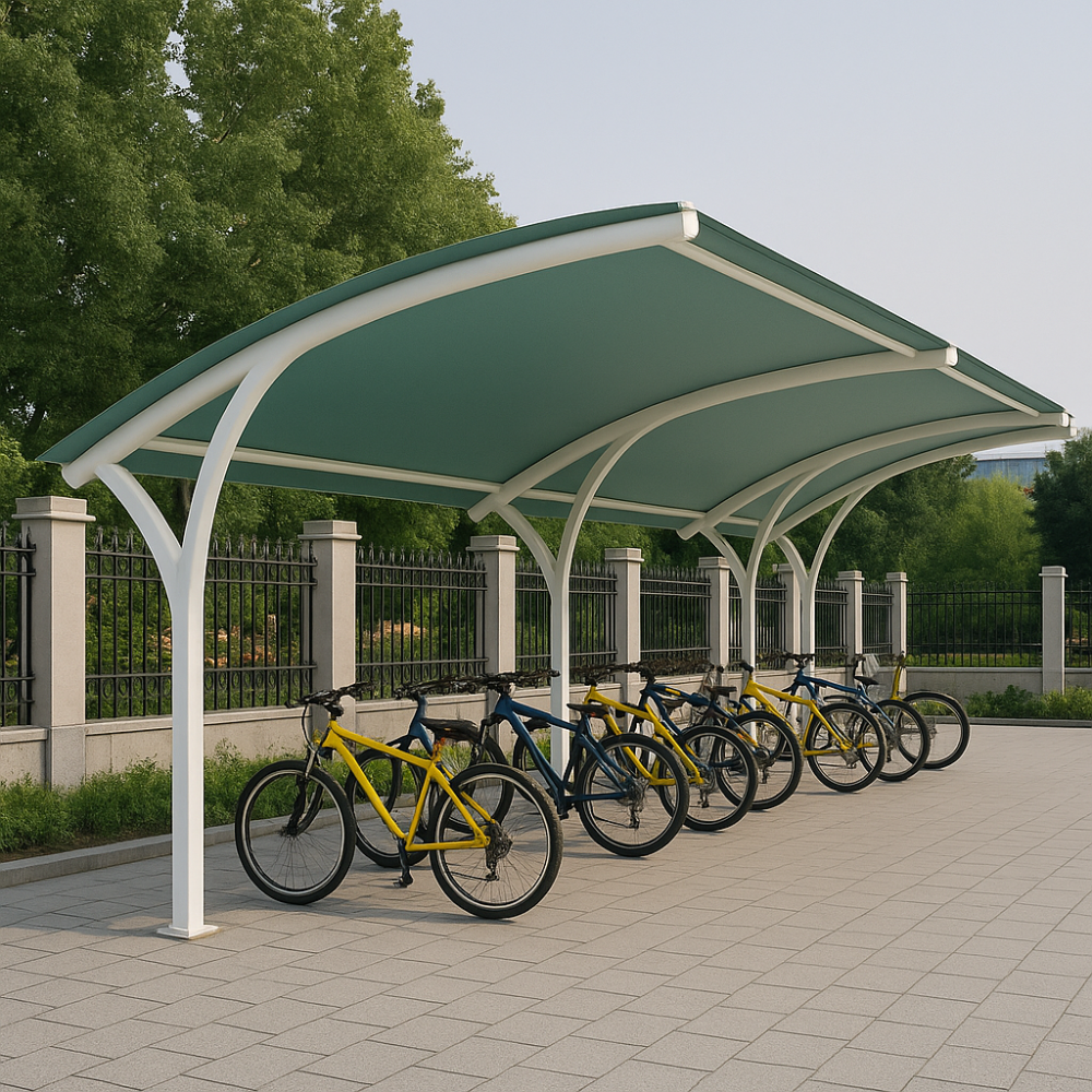 Our bicycle parking shades are compact, sturdy structures designed to protect bikes from sun, rain, and dust. Perfect for schools, parks, and transport hubs, these shades use durable steel frames and UV-resistant fabric. Easy to install and maintain, they offer reliable protection and organized parking for bicycles in both public and private outdoor spaces year-round.
