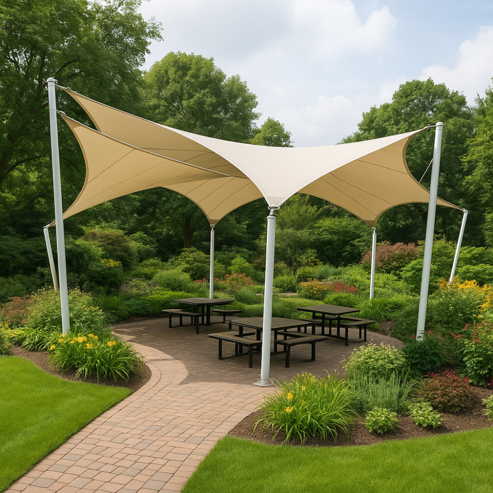 We provide tensile shades for schools to cover play areas, walkways, and assembly zones, ensuring safety and comfort. In parks and playgrounds, our shades offer cool, inviting spaces that encourage outdoor activities throughout the year.