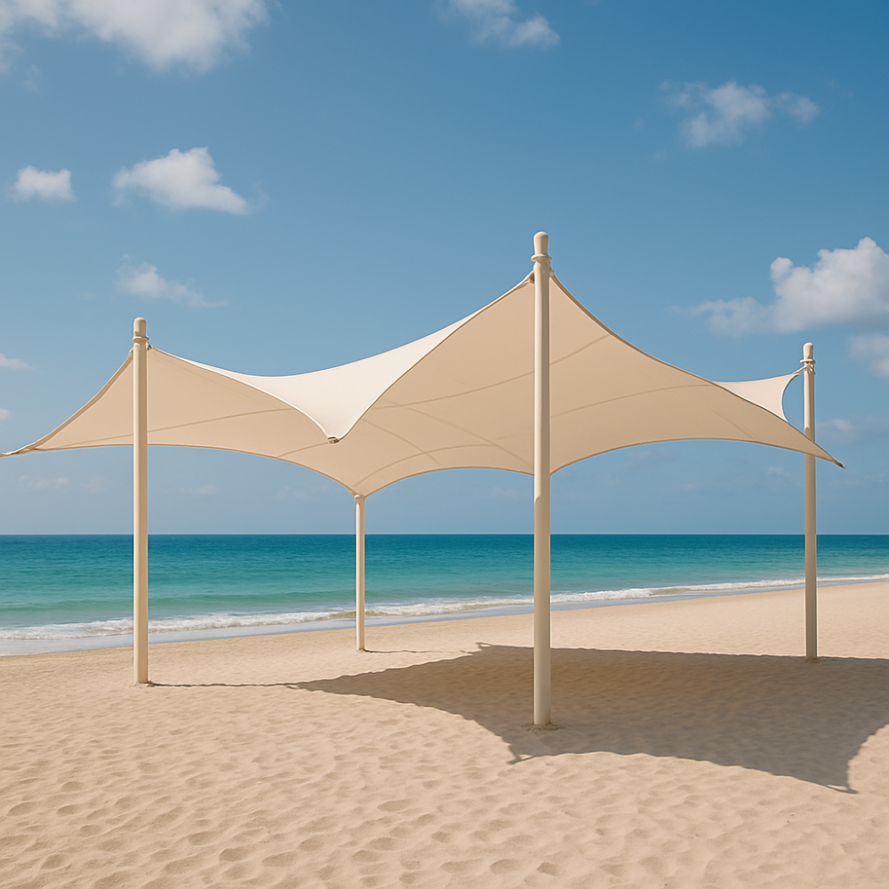 Walkway tensile shades enhance pedestrian comfort in educational, healthcare, and commercial settings. For beaches and swimming pools, we deliver breathable, attractive structures that reduce heat and elevate the experience.