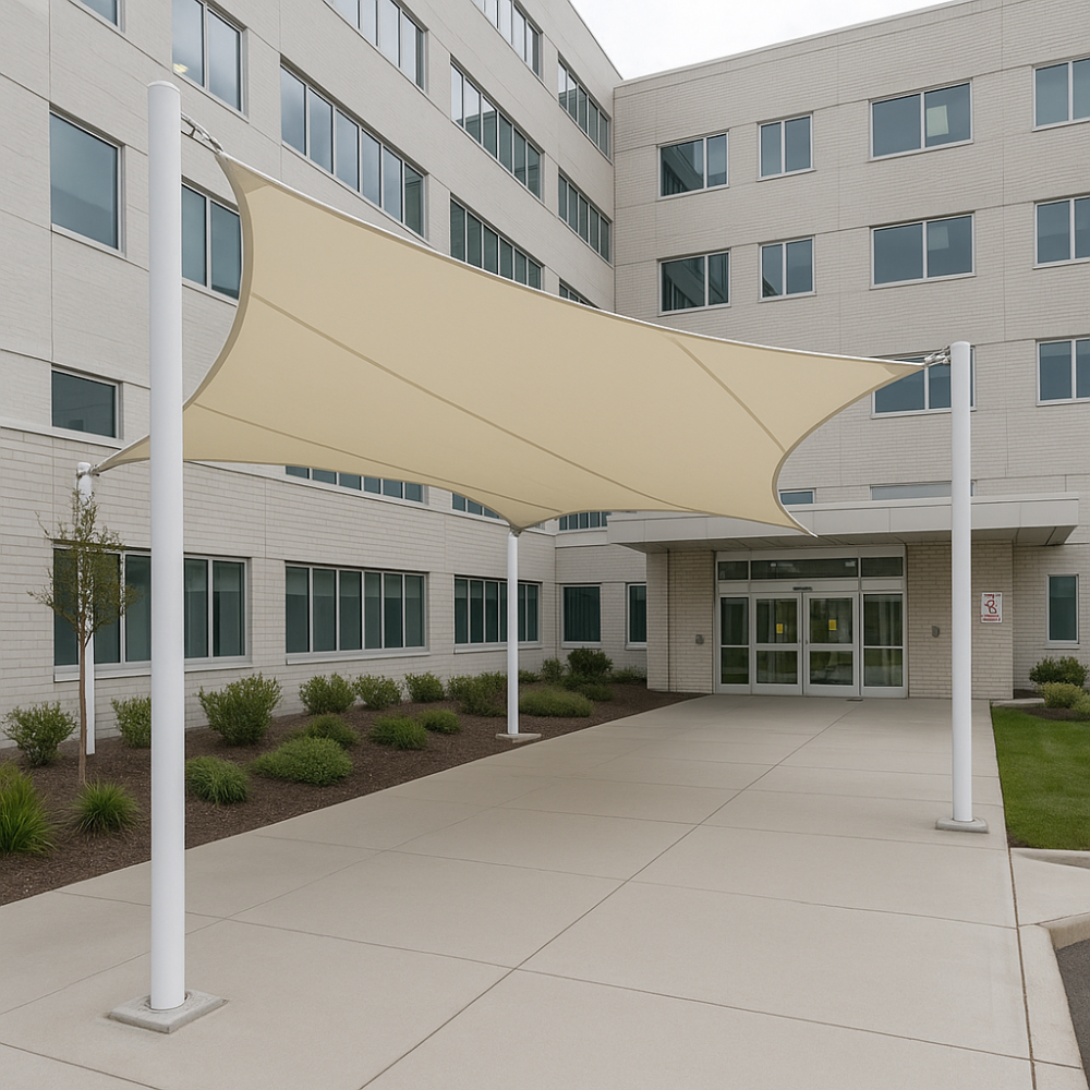 Our solutions extend to gardens, hospital entrances, and residential spaces, offering protection for patios, balconies, carports, and outdoor seating. In industrial environments, tensile structures provide cover for storage yards and work zones, ensuring ventilation and durability.