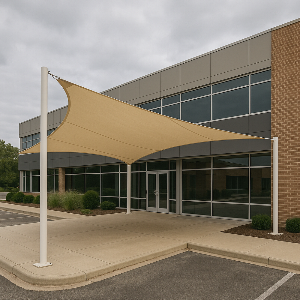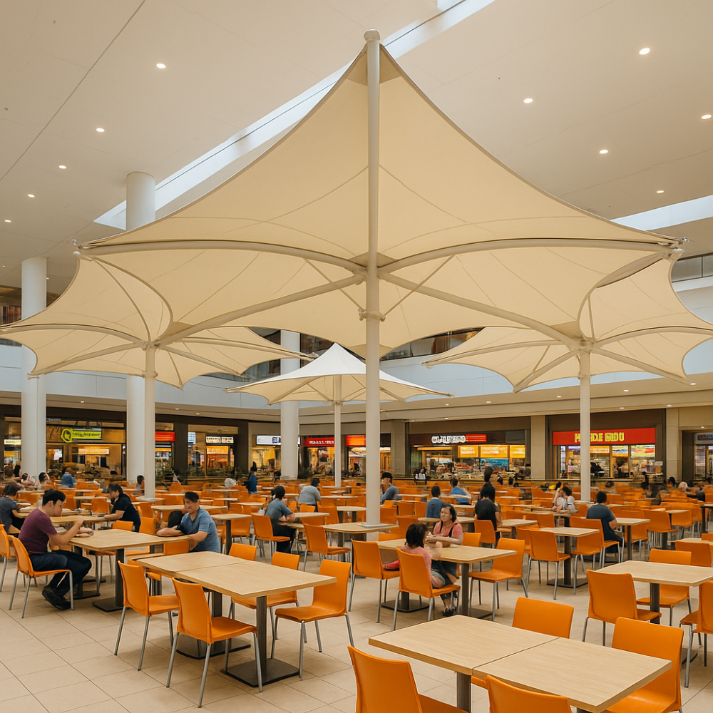 For commercial buildings and food courts in malls, tensile shades add both visual appeal and functional outdoor space, perfect for dining, relaxing, or public interaction.